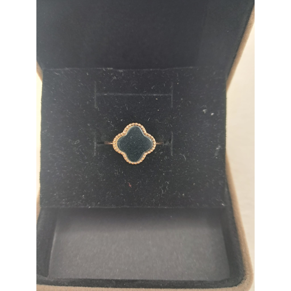 925銀鑲嵌 天然緬甸 A貨 翡翠 墨翠 四葉草戒指 可调节戒指