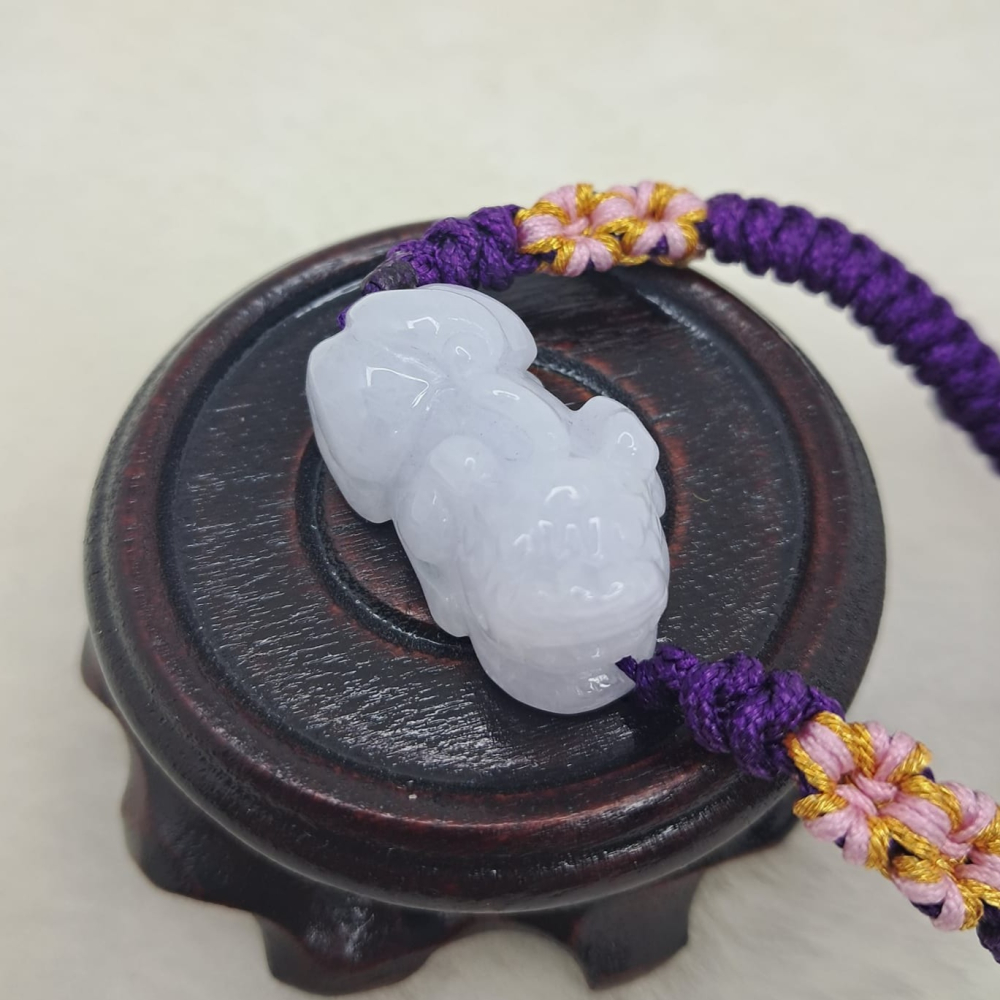 天然緬甸A貨翡翠 白冰 貔貅 手繩 招財 開運貔貅