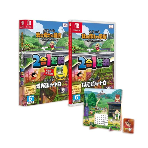 【八米蔚藍】任天堂 NS Switch 蠟筆小新 我與博士的暑假 + 煤炭鎮的小白 2合1套裝 中文版