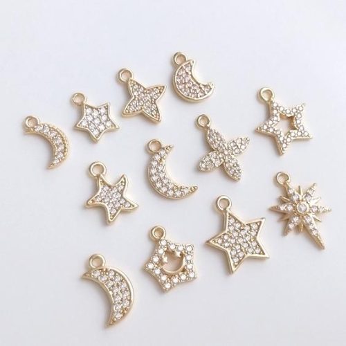 宏雲Hongyun-Ala-0801---14K包金保色微鑲鋯石星星月亮芒星系列小吊飾diy手鏈耳環飾品吊墜
