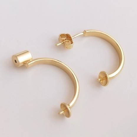 宏雲Hongyun-Ala-0801---925銀耳針14K包金C形半孔珠托耳釘帶耳塞可粘珍珠耳環diy耳飾配件