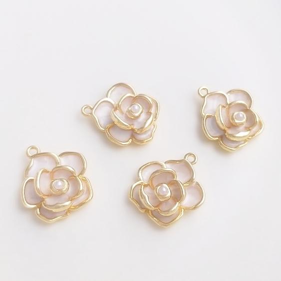 宏雲Hongyun-Ala-0801---14K包金保色畫油山茶花掛件手工diy珍珠項鏈花朵吊墜手鏈飾品吊飾