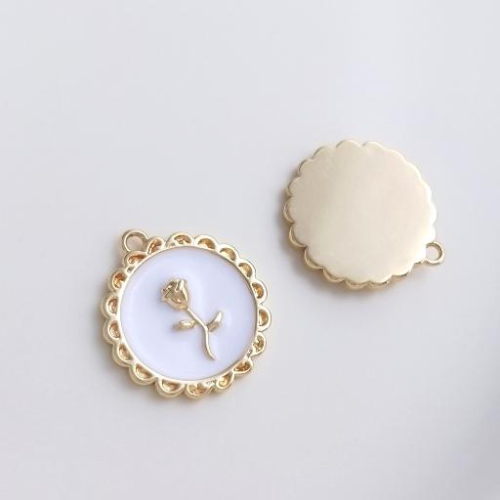 • 圓形 畫白油玫瑰花相框吊墜 1個