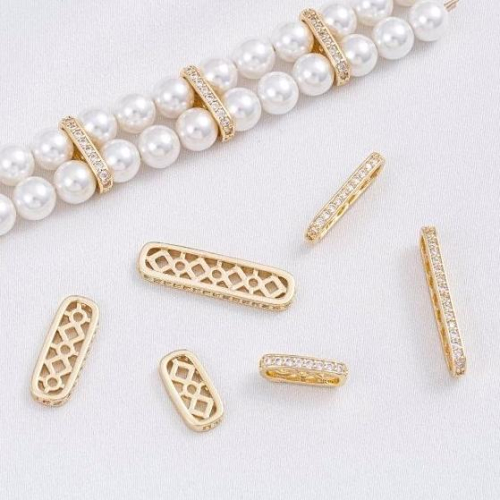 宏雲Hongyun-Ala--- 保色14K包金多孔橢圓鋯石隔珠片diy手工串珠雙排珍珠手鏈隔片配件