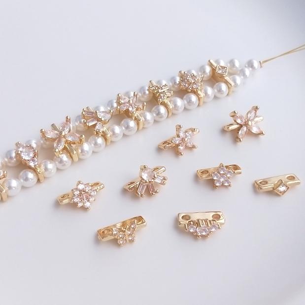 宏雲Hongyun-Ala-0801---14K包金鑲鋯小花蝴蝶雙排手串珍珠隔片雙孔隔珠材料手鏈飾品配件