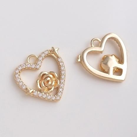 • 鑲鋯心形框玫瑰花吊墜 1個