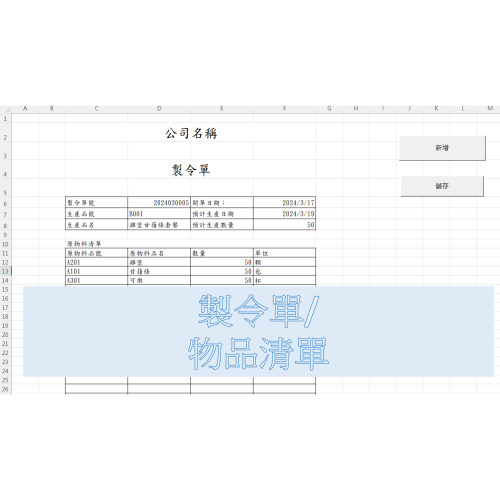 簡單來說,生產單位收到要生產的品項與數量之指令,製令單為進行此批生產之依據。