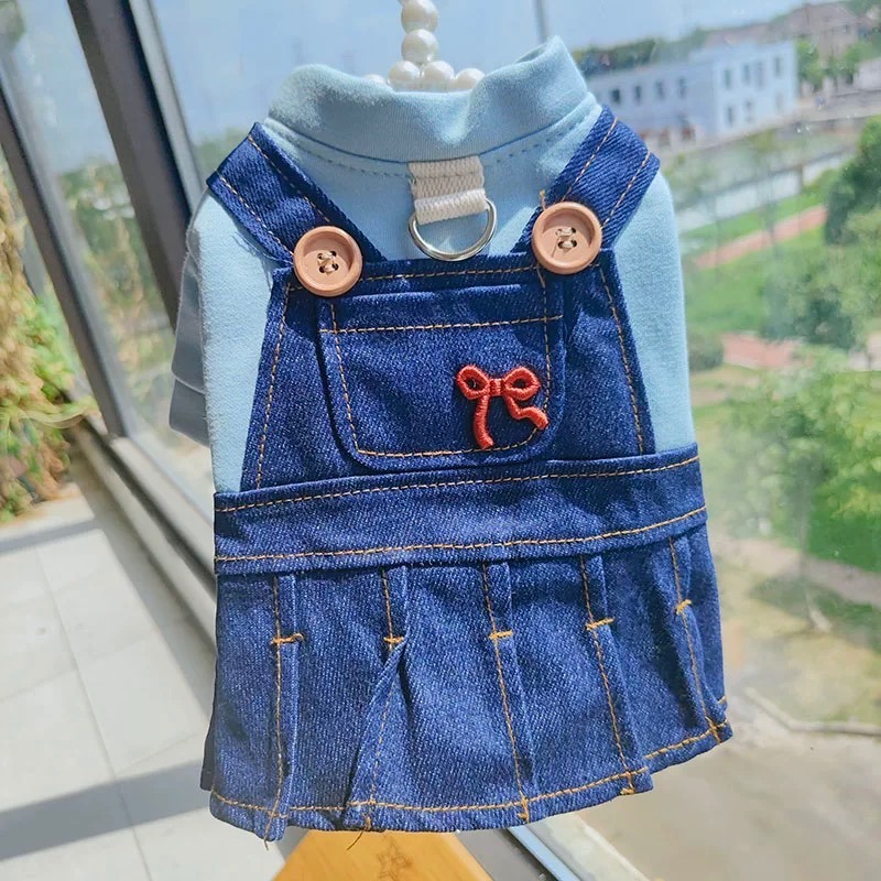 ♡【 J18 預購 】刺繡小粉蝴蝶結水藍假兩件牛仔裙