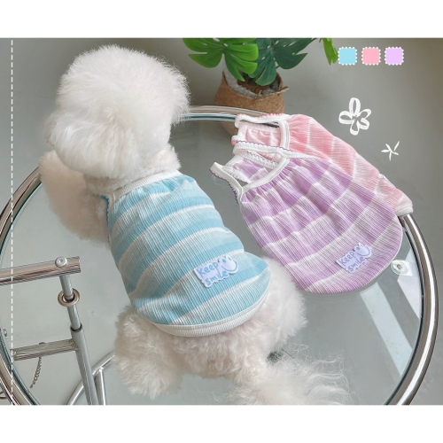 ♡【E02 預購】多色橫條keep smile布標薄款透氣夏季背心 寵物背心 貓咪防掉毛背心 貓咪背心 狗狗夏天