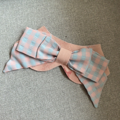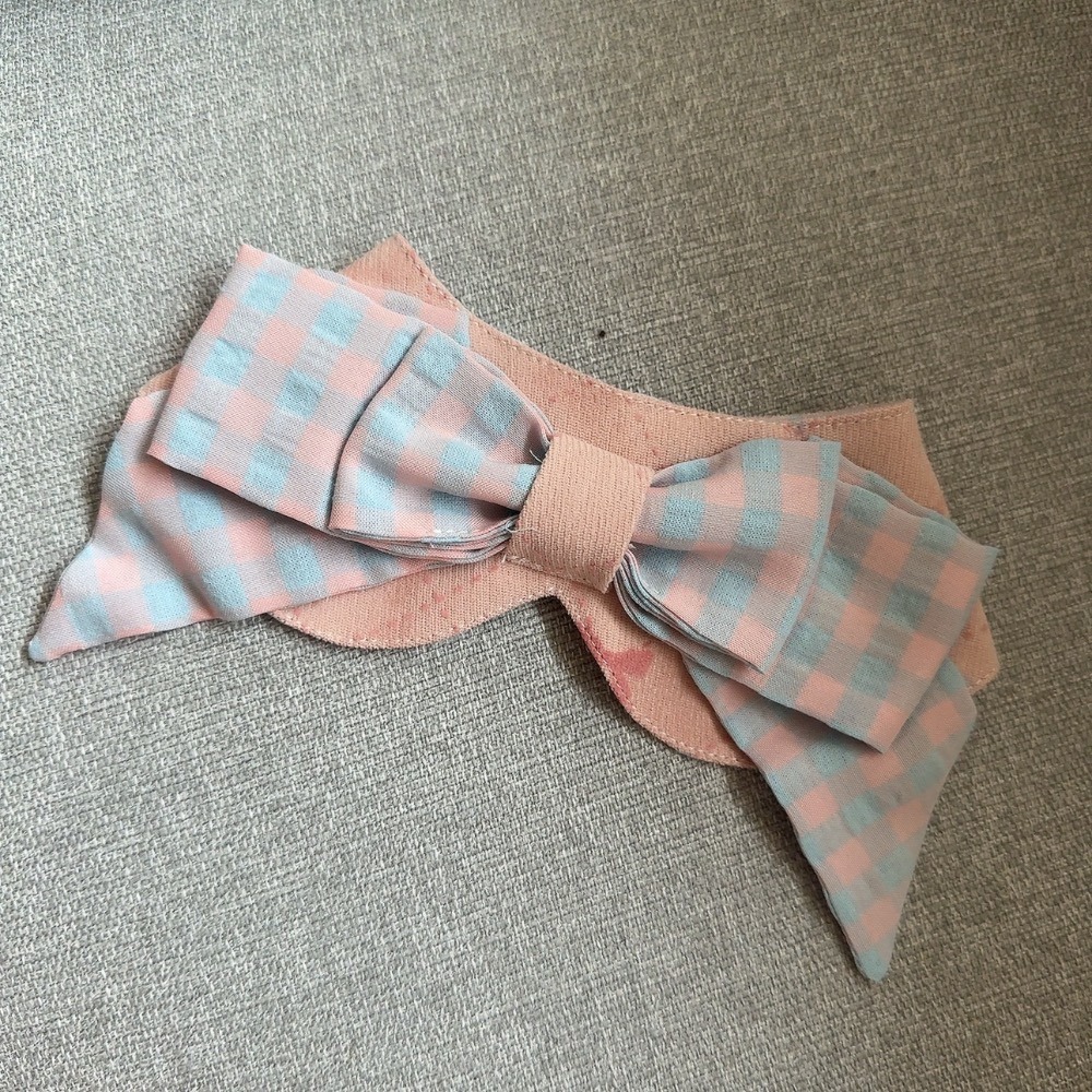♡【G23 預購】藍格配粉蝴蝶結撞色領巾