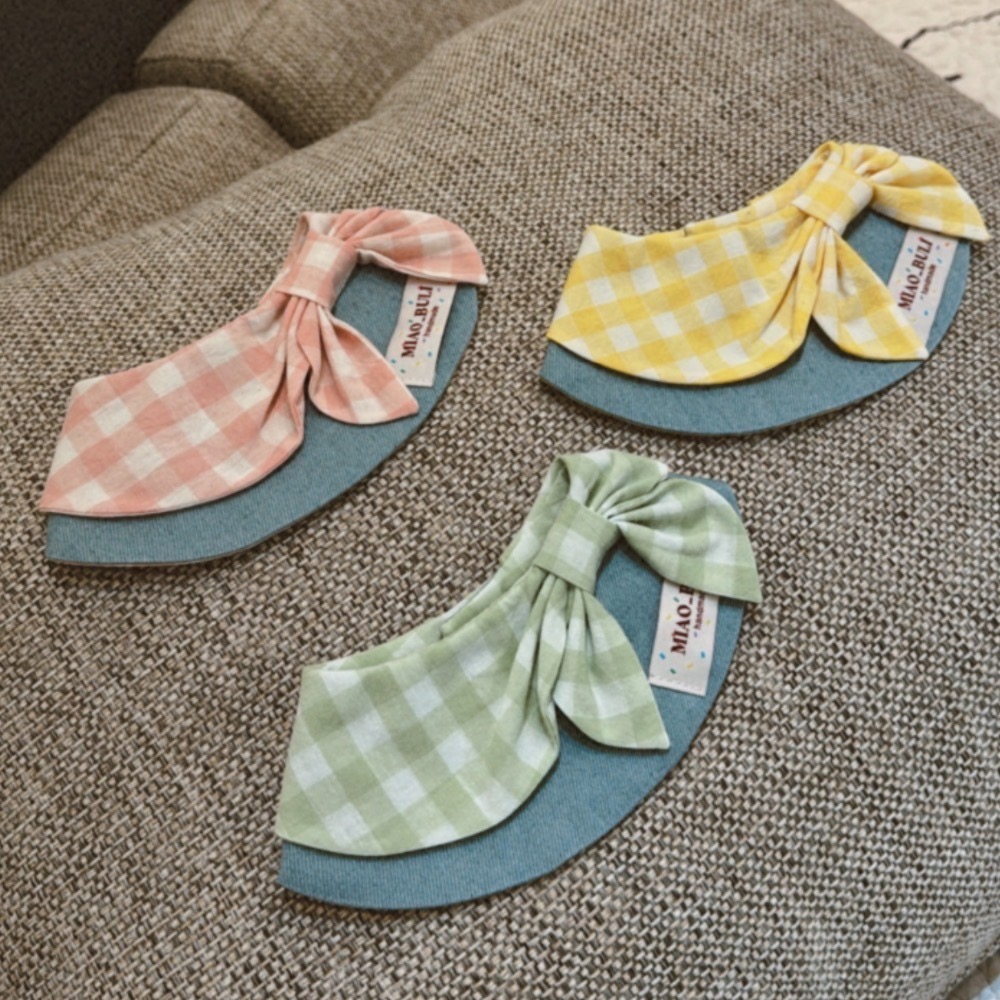 ♡【G25 預購】 彩色糖果格紋淺牛仔拼接蝴蝶結領巾