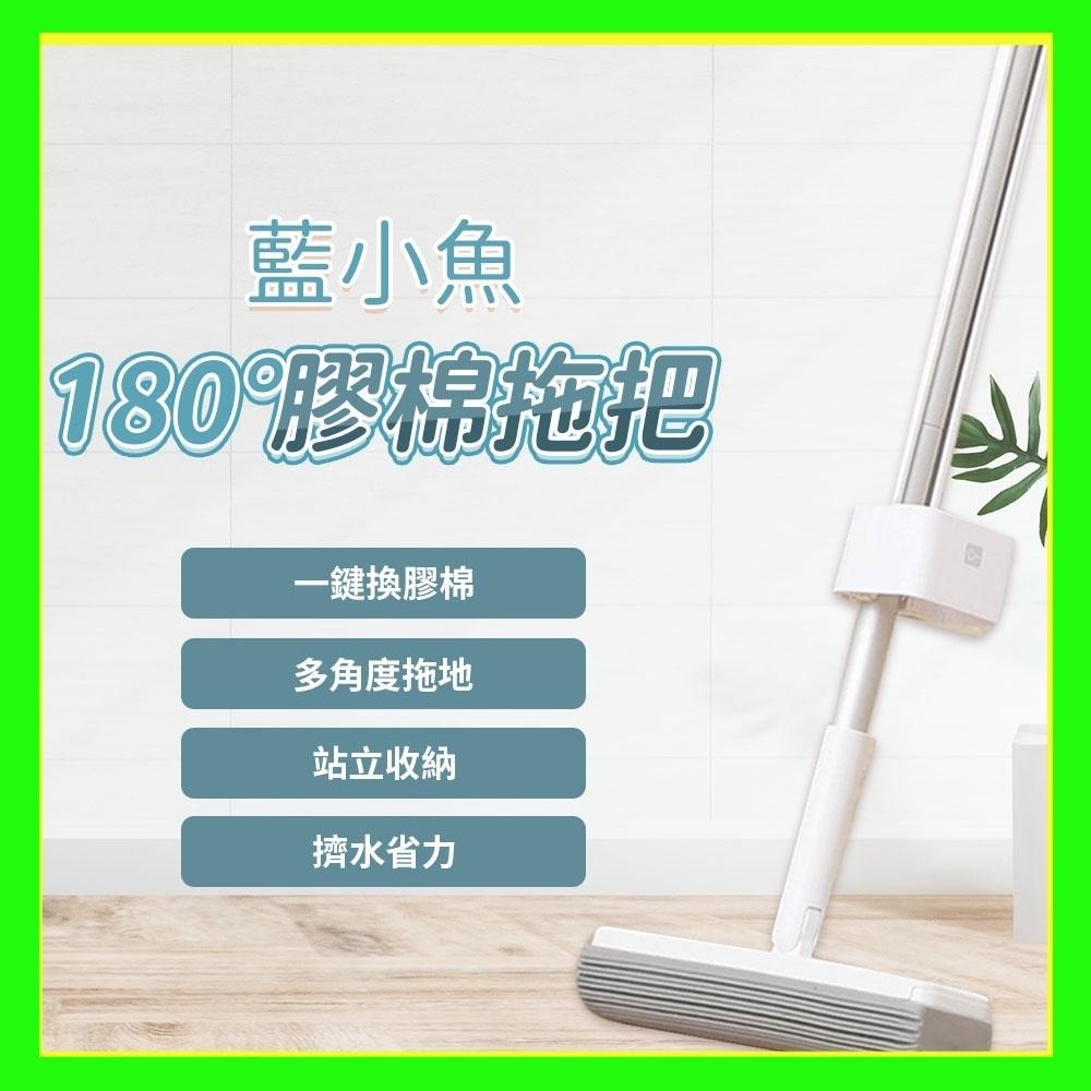 小米有品 藍小魚 180° 膠棉拖把 自由轉向 吸水海綿拖把 懶人拖把 吸水拖把 多角度拖把 免手洗拖把 拖把 收納 ♠