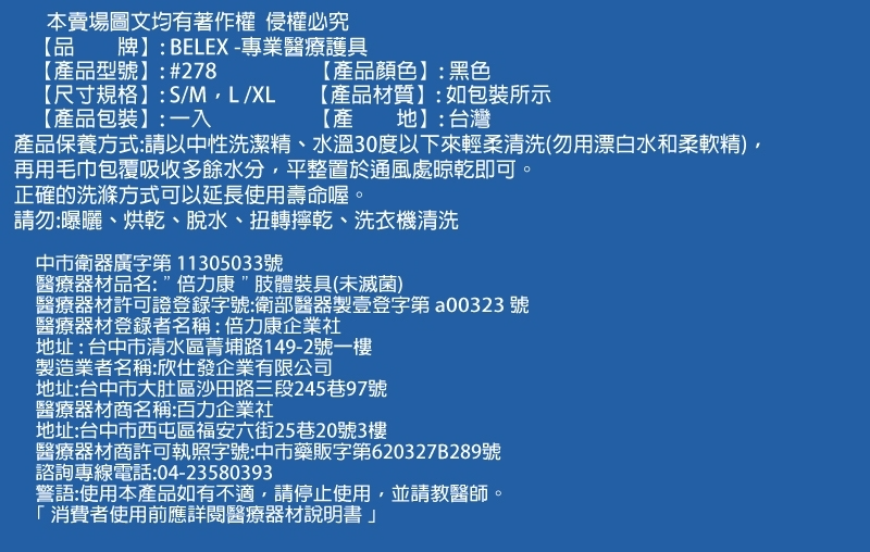 【品 牌】:BELEX - 專業醫療護具