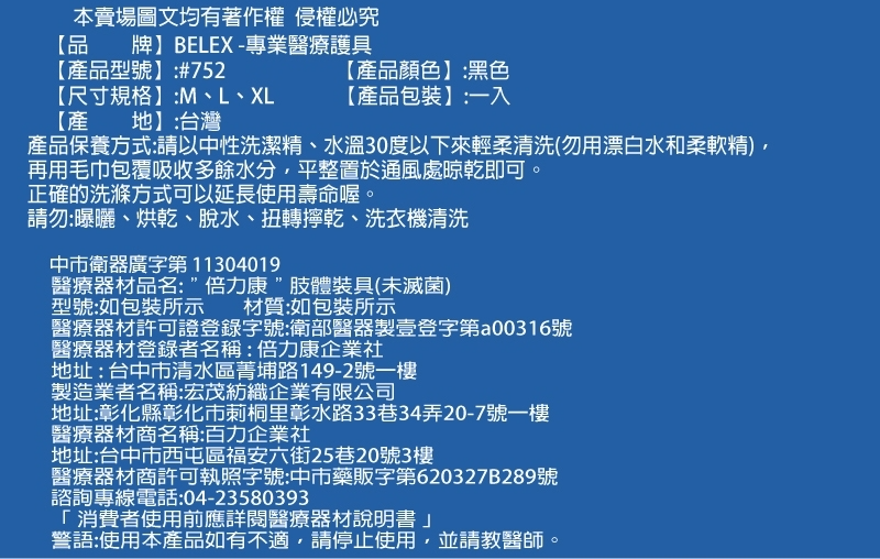 醫療器材品名: "倍力康"肢體裝具(未滅菌)