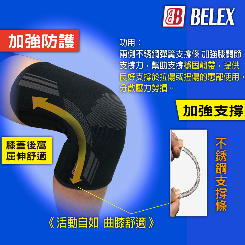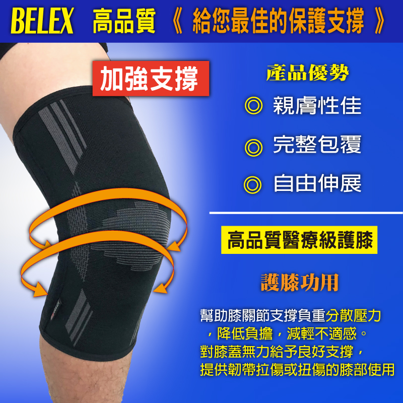 台灣製 醫療級護膝 兩側支撐條 韌帶拉傷 膝蓋退化 復健護膝 COOLMAX吸濕排汗 【BELEX】透氣護膝 健走護膝
