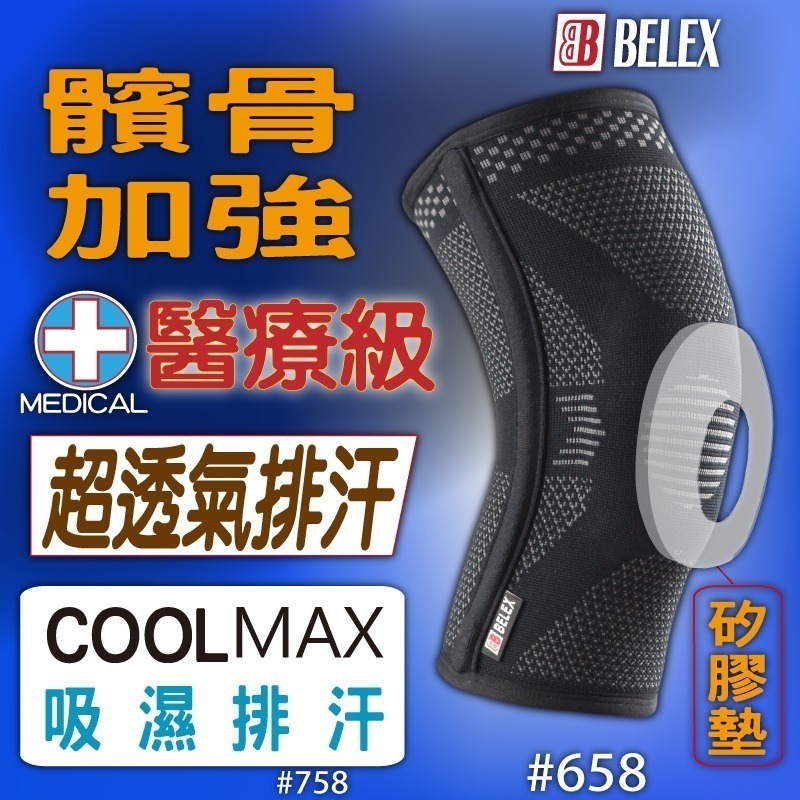 台灣製 醫療護膝 矽膠穩定髕骨 韌帶拉傷護膝 膝蓋退化 十字韌帶 半月板 【BELEX】兩側支撐條 透氣護膝 健走護膝