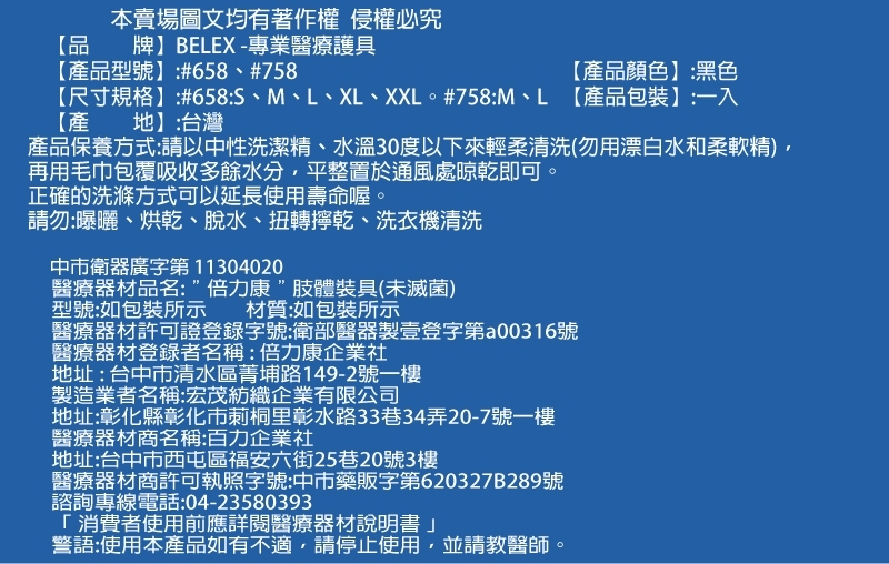 醫療器材品名 : "倍力康"肢體裝具(未滅菌)