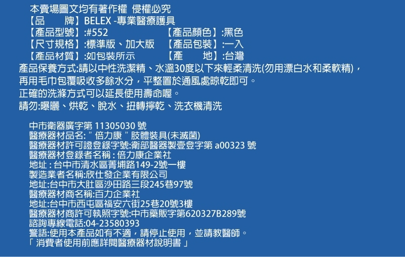 【品 牌】: BELEX - 專業醫療護具