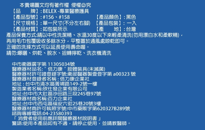 【品 牌】: BELEX - 專業醫療護具