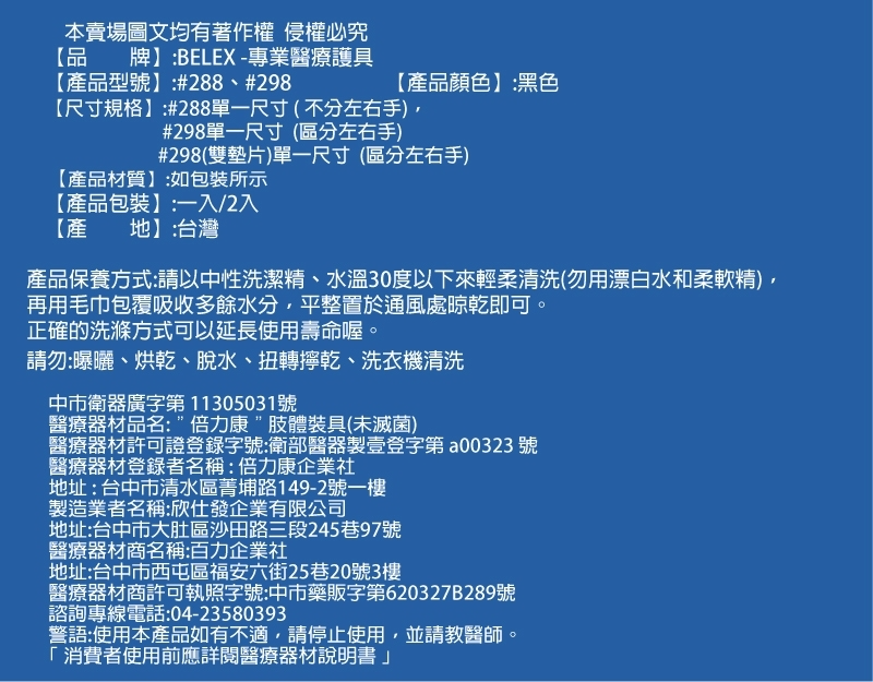 醫療器材品名 : "倍力康"肢體裝具(未滅菌)