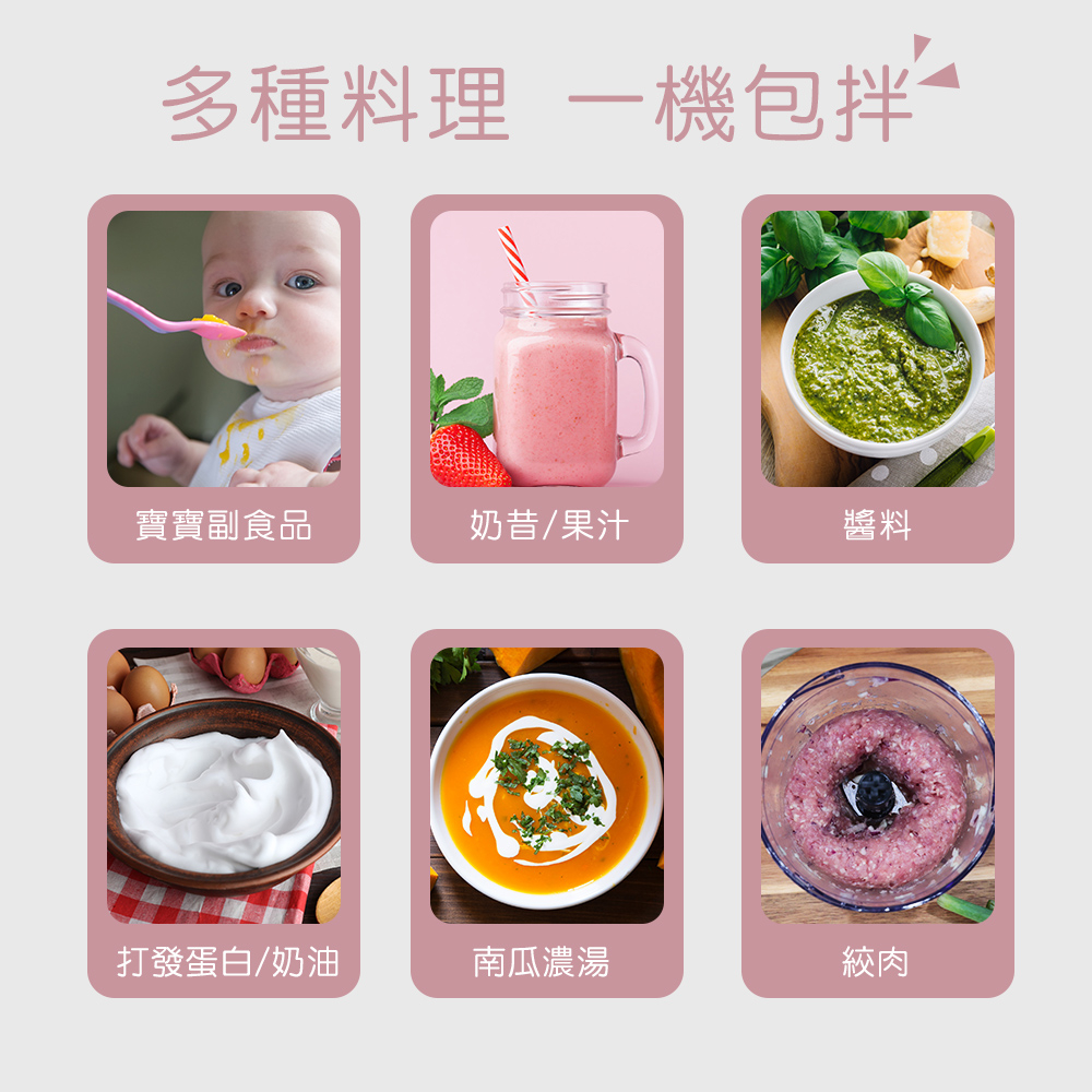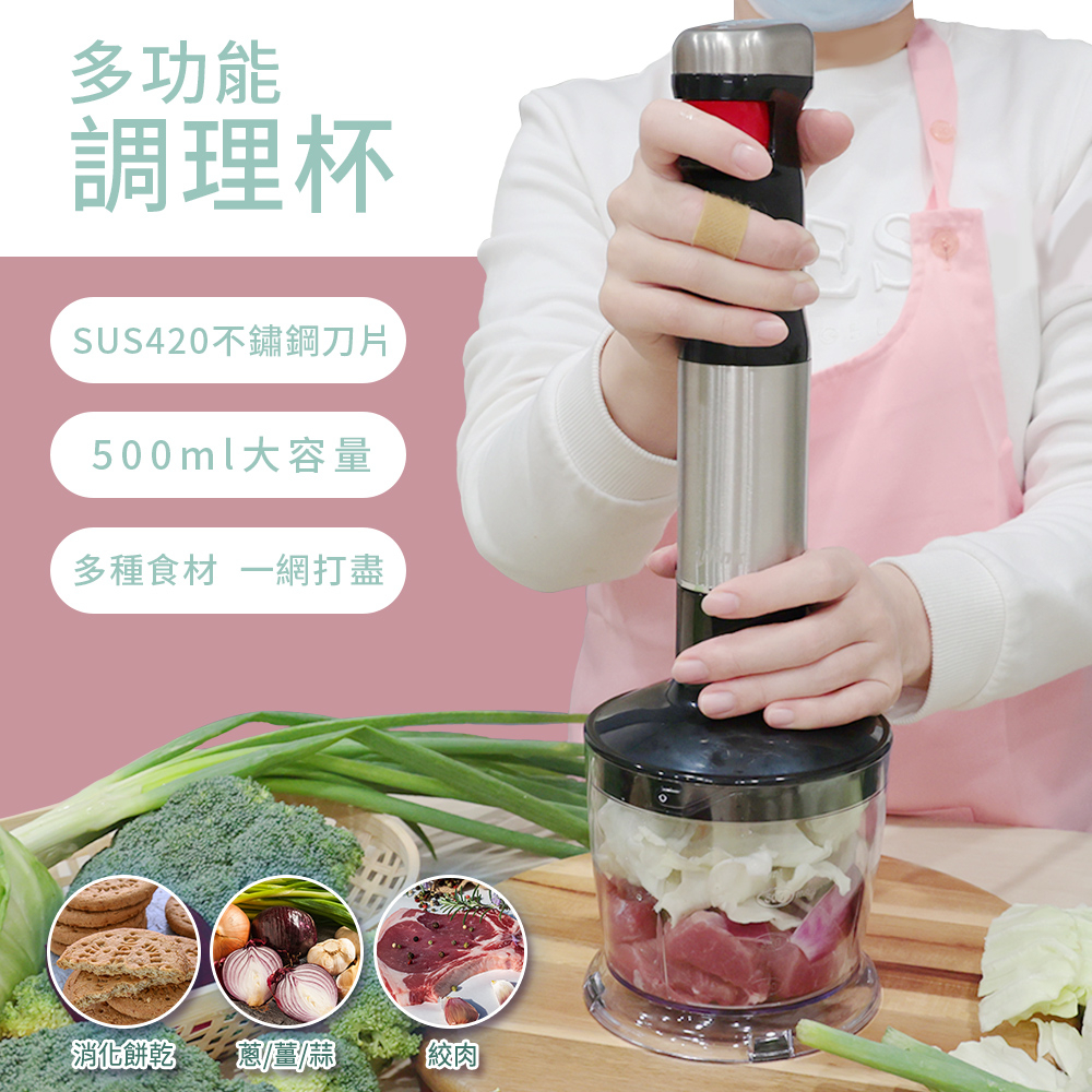 ●多種配件搭配,輕鬆搞定多元料理(包含攪拌杯、調理杯、打蛋器)
