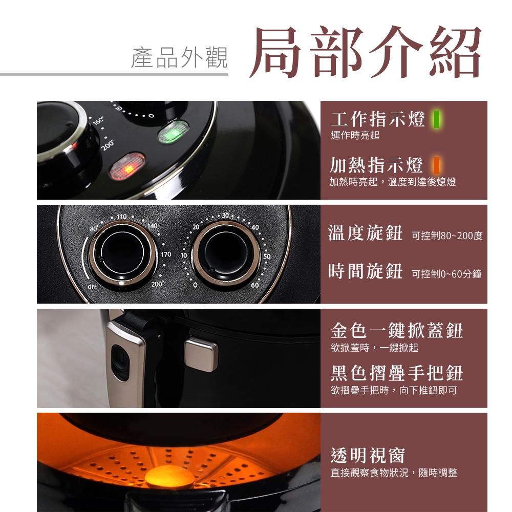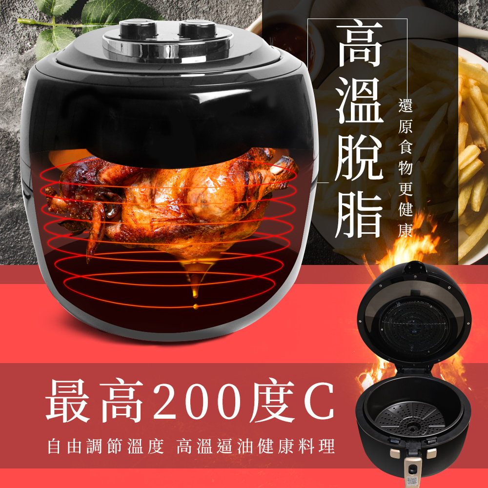 ● 最高200度C加熱快,高溫脫脂還原食物更健康
