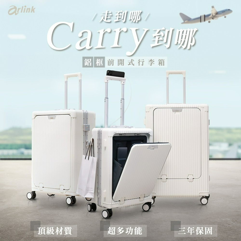 【Arlink】多功能前開式 硬殼防刮鋁框行李箱(月光白/鋰石灰)