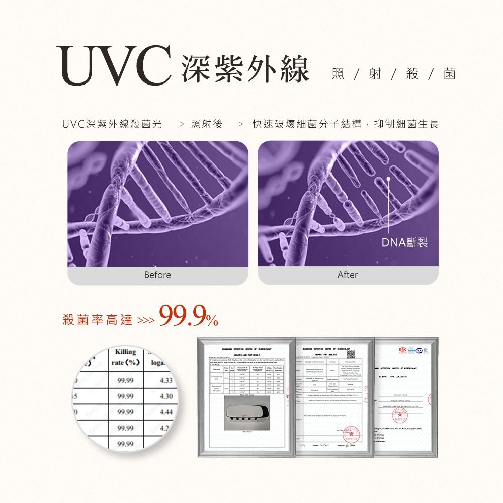 ● UVC深紫外線,能夠快速破壞細菌分子結構,殺菌率高達99.9%