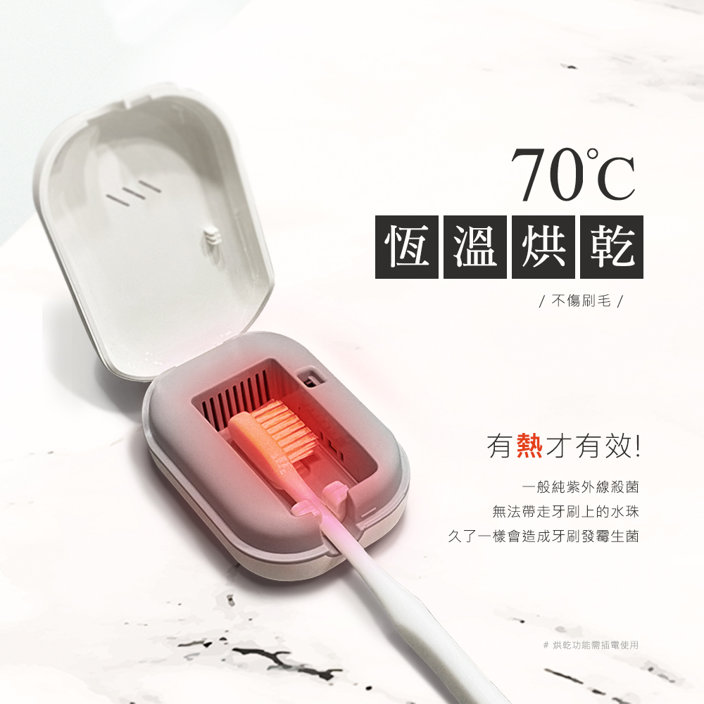 ● 70℃恆溫烘乾刷毛,快速帶走牙刷上的水珠,保持牙刷乾燥整潔