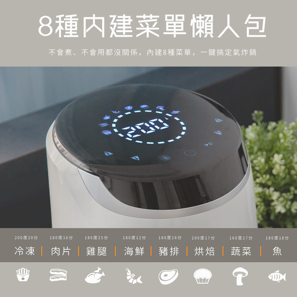 ● 8種內建菜單料理 x 一鍵搞定氣炸鍋