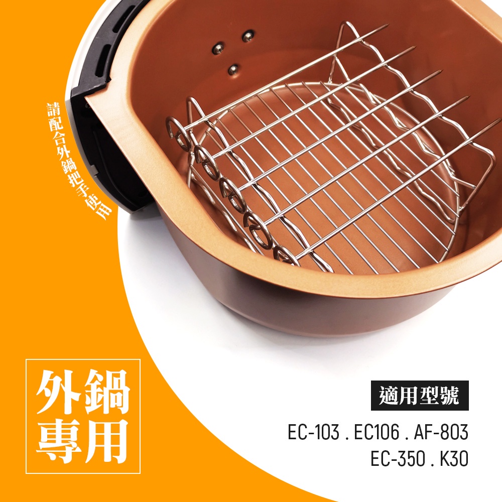 ※烤架須放在外鍋裡,並非炸籃,所以需另外購買把手扣在外鍋上使用