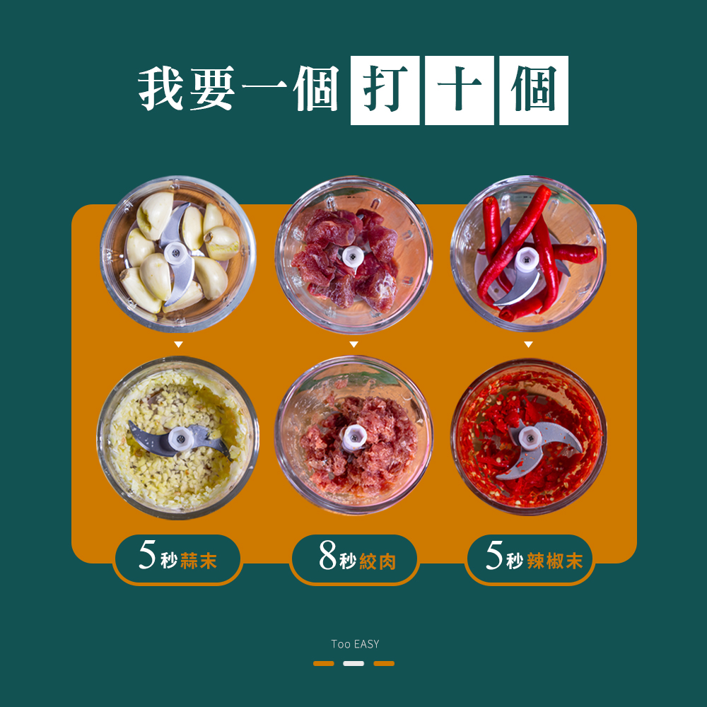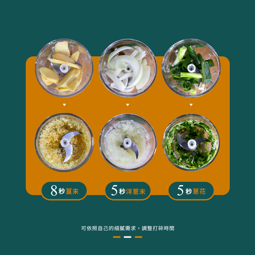 ● 多種食材 一網打盡:嬰兒輔食/碎蒜/碎薑/碎菜/絞肉/堅果/醬料攪拌