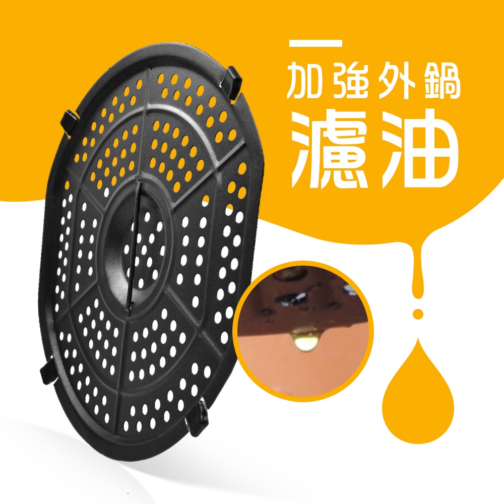 ※濾油盤須放在外鍋裡,並非炸籃,所以需另外購買把手扣在外鍋上使用