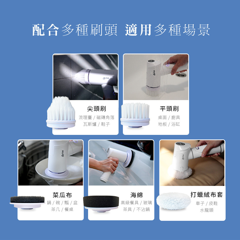 ● 附贈5種刷頭,配合多種使用情境,既能刷洗也能打蠟