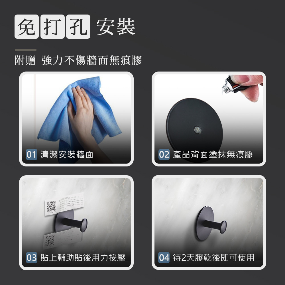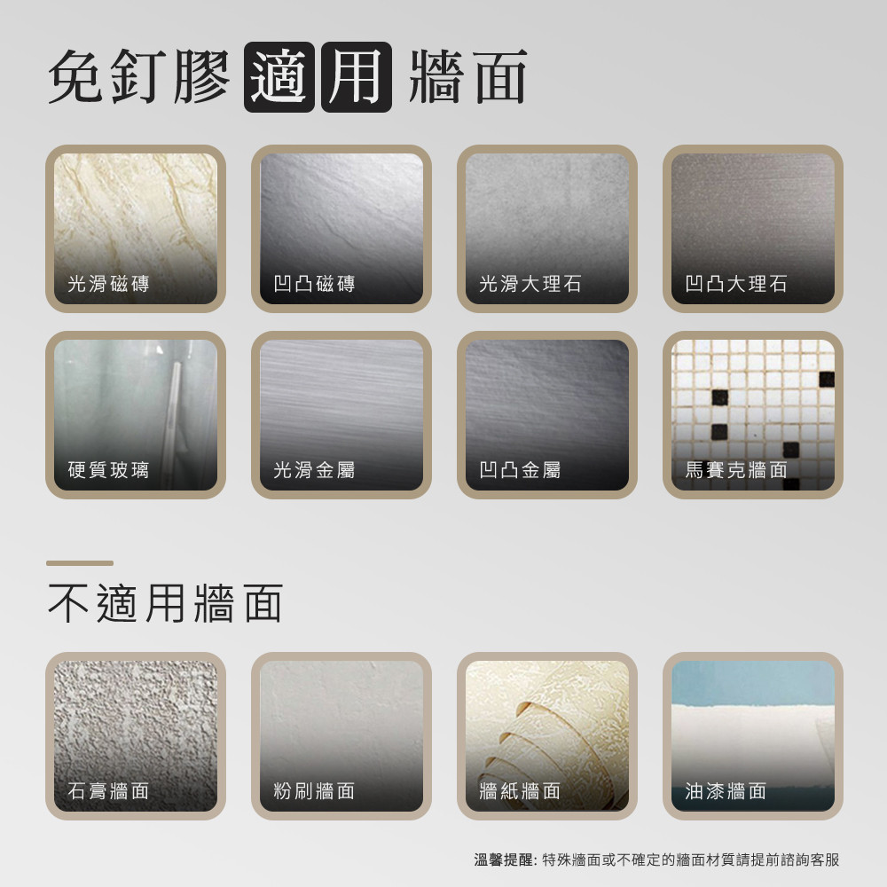 ● 使用附贈的無痕膠安裝,可達到最佳承重,久用不易掉落