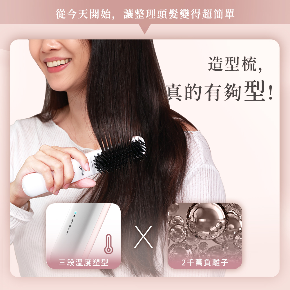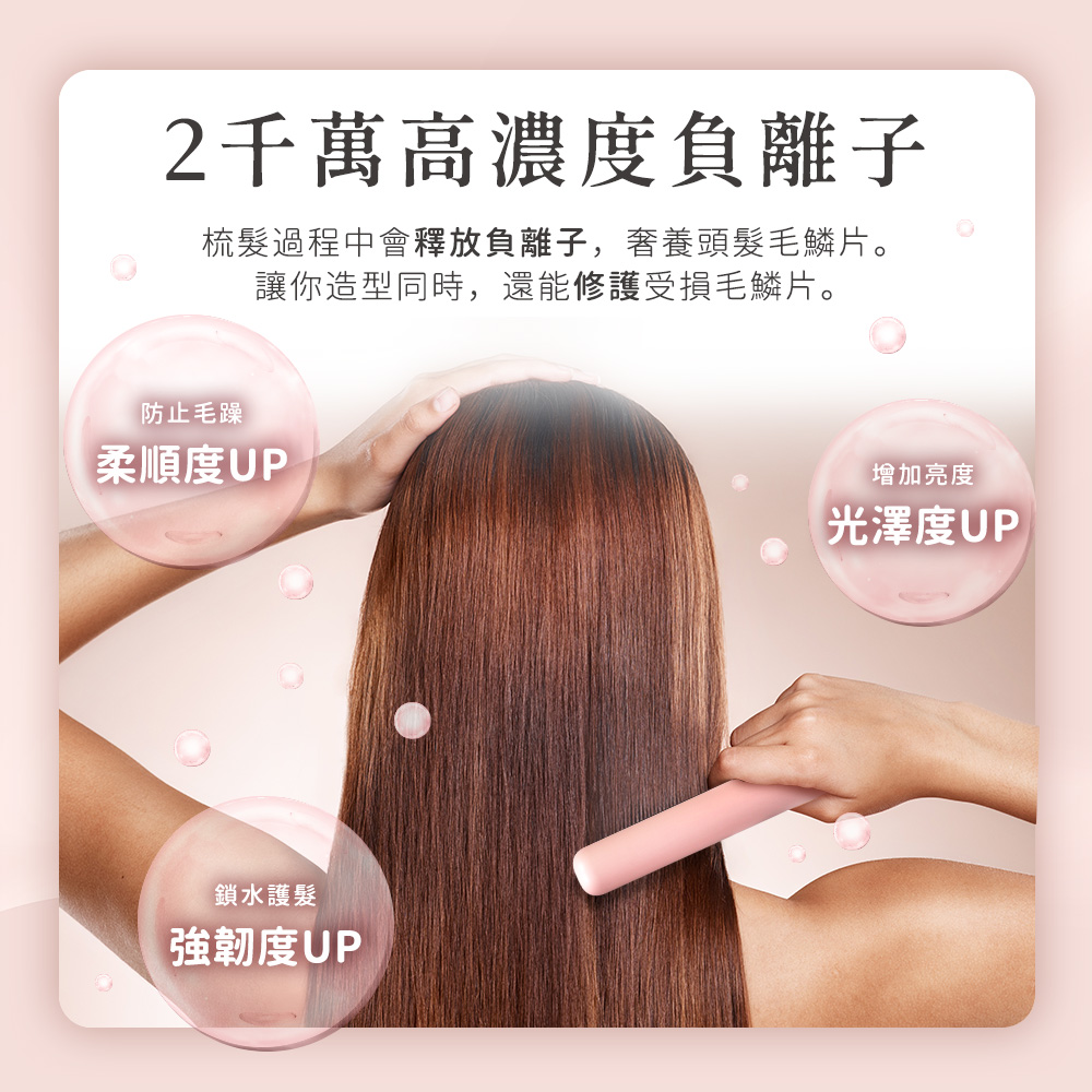 ●梳髮過程中會釋放2千萬高濃度負離子,奢養頭髮毛鱗片,防止毛躁輕鬆護髮