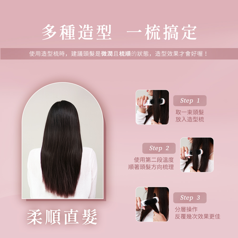●輕輕一梳,便能有效撫平毛躁乾枯,讓頭髮變得柔順光滑