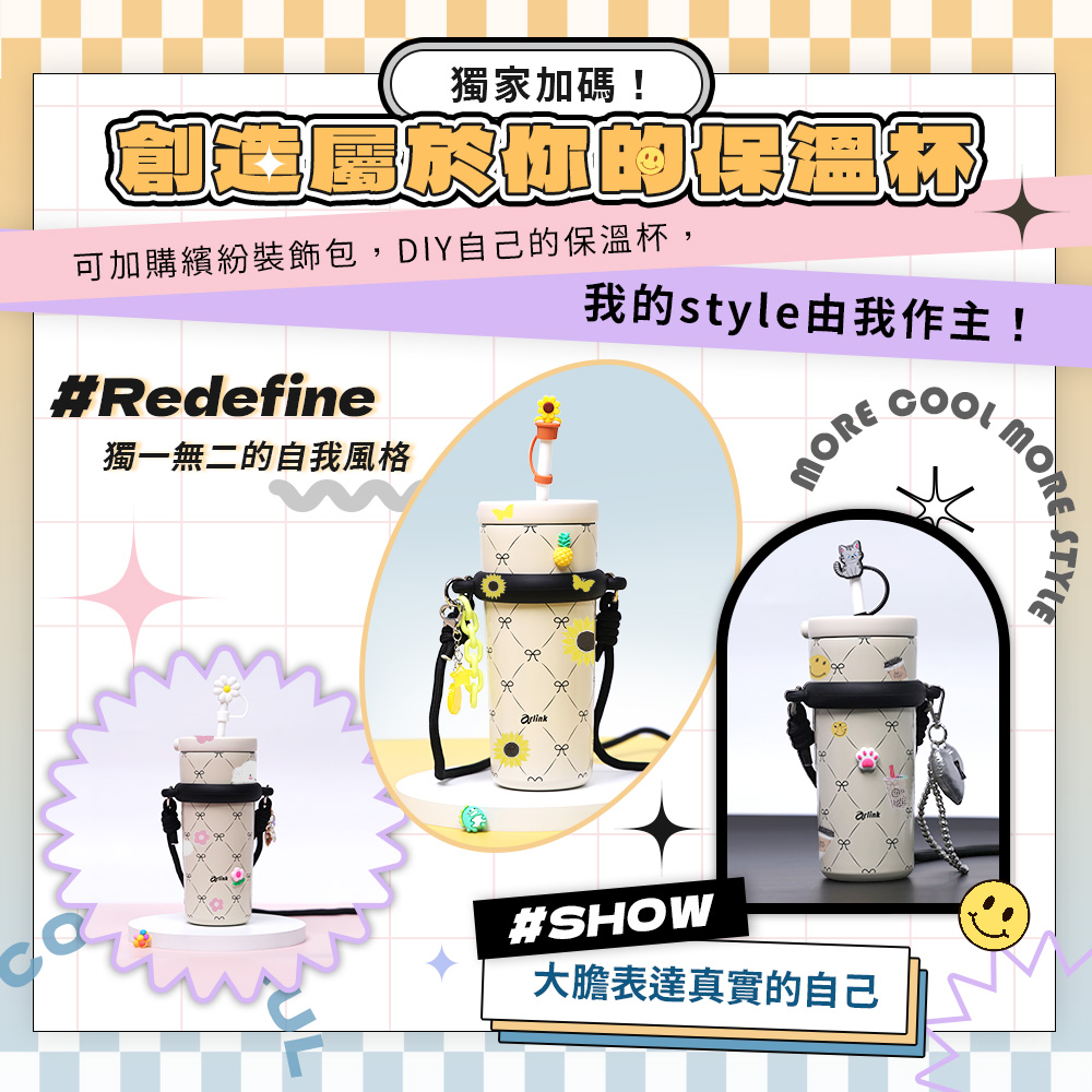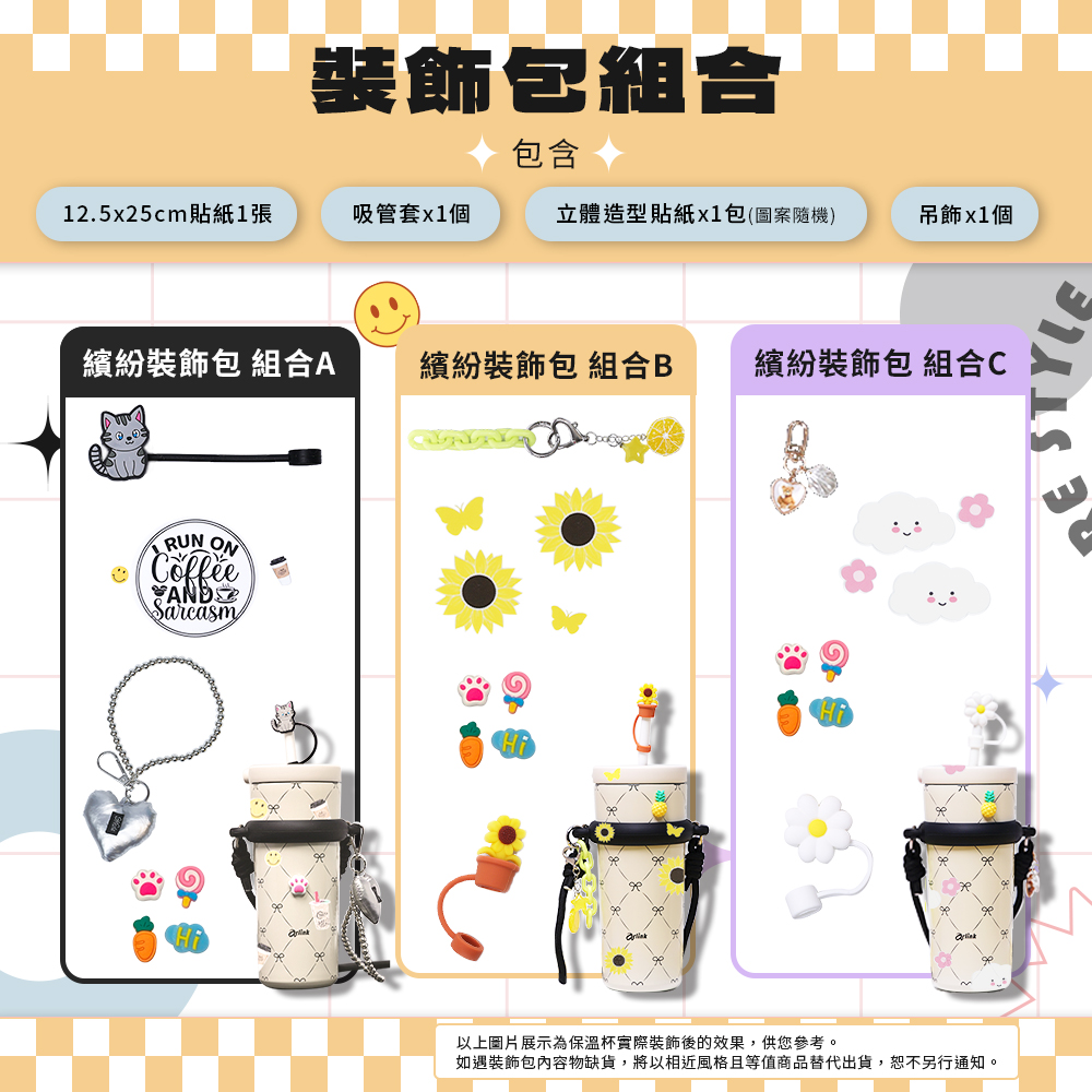● 可加購繽紛裝飾包,DIY保溫杯,創造屬於你的保溫杯
