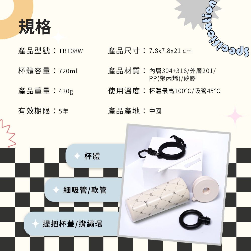 ● 隨貨附贈細吸管,保溫杯的吸管口徑亦可裝入市售粗吸管