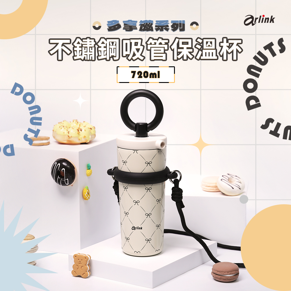 【Arlink】多拿滋系列 不鏽鋼吸管保溫杯 720ml 水壺 隨行杯 可揹可提 不鏽鋼內膽 長效保溫 保溫杯 台灣品牌