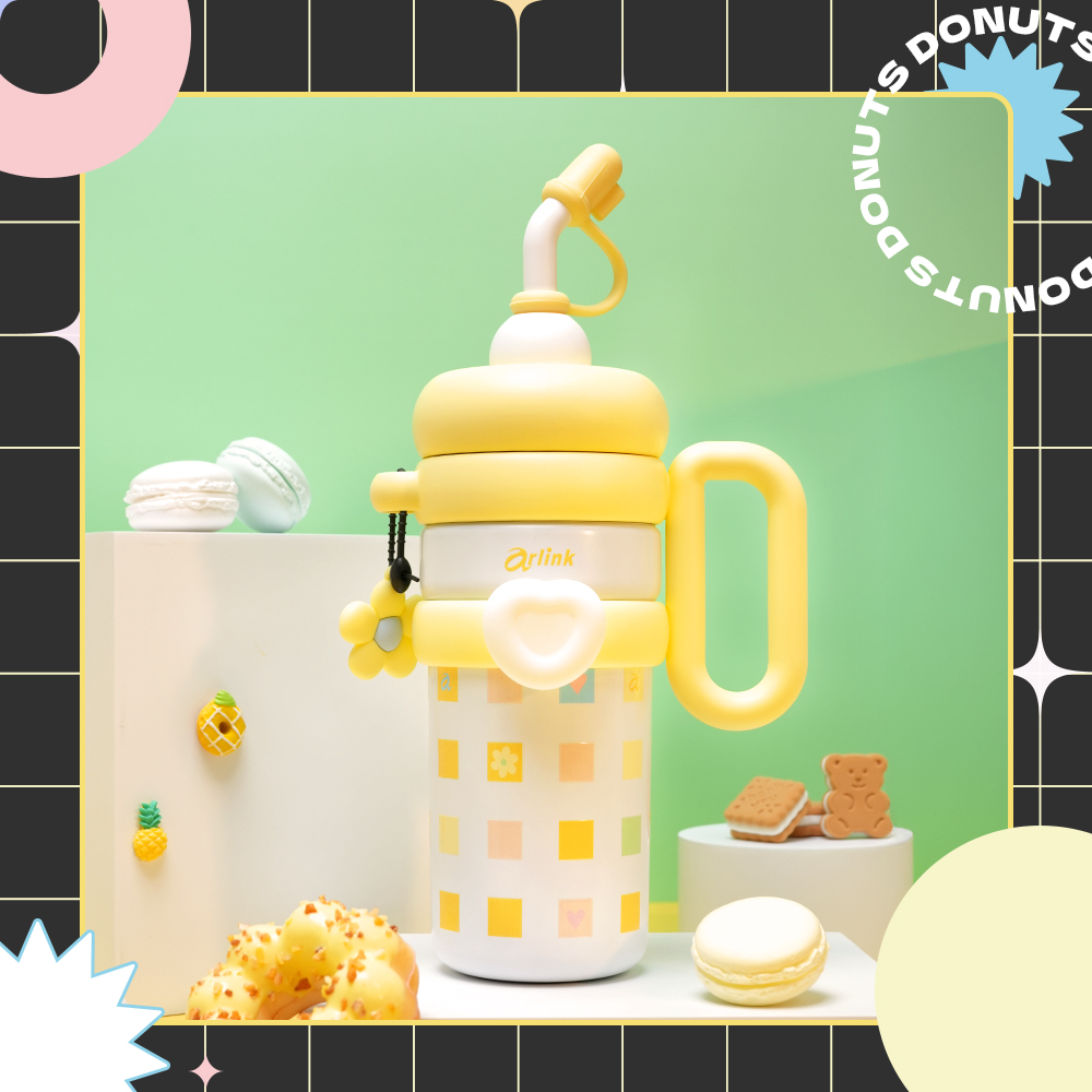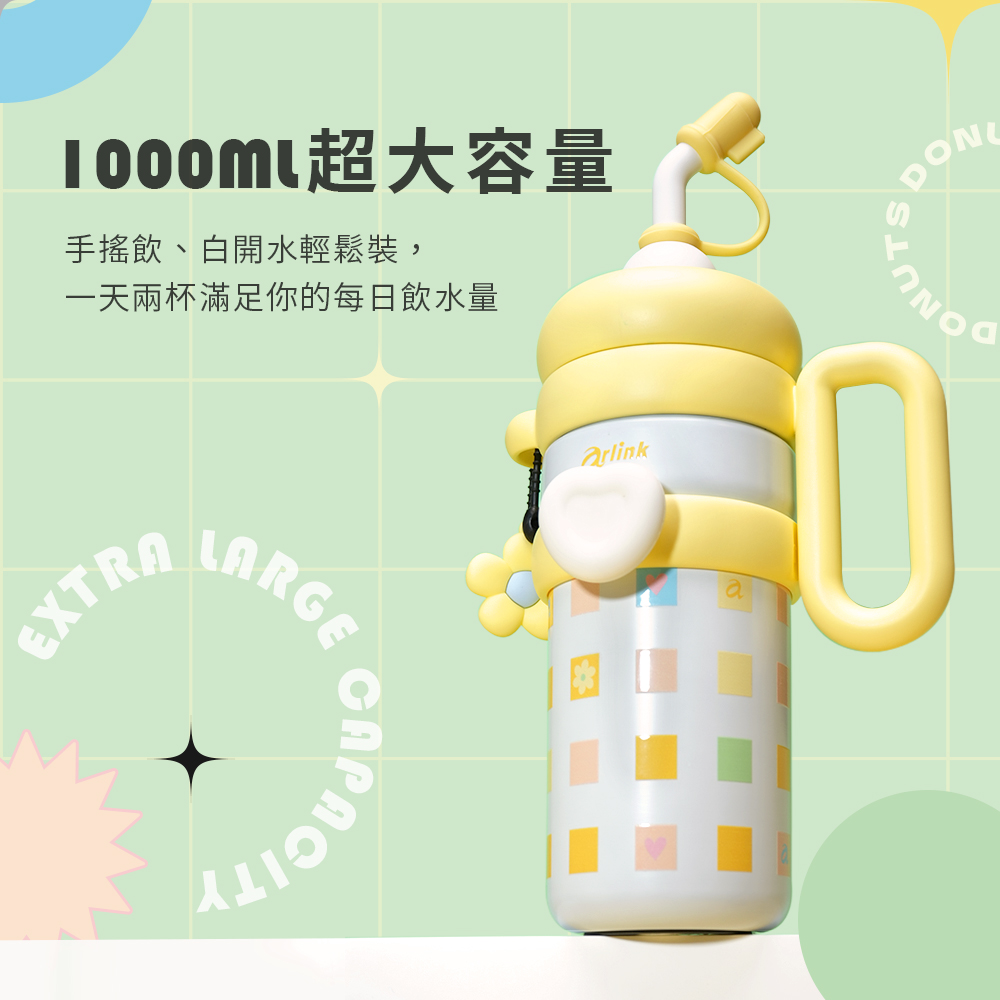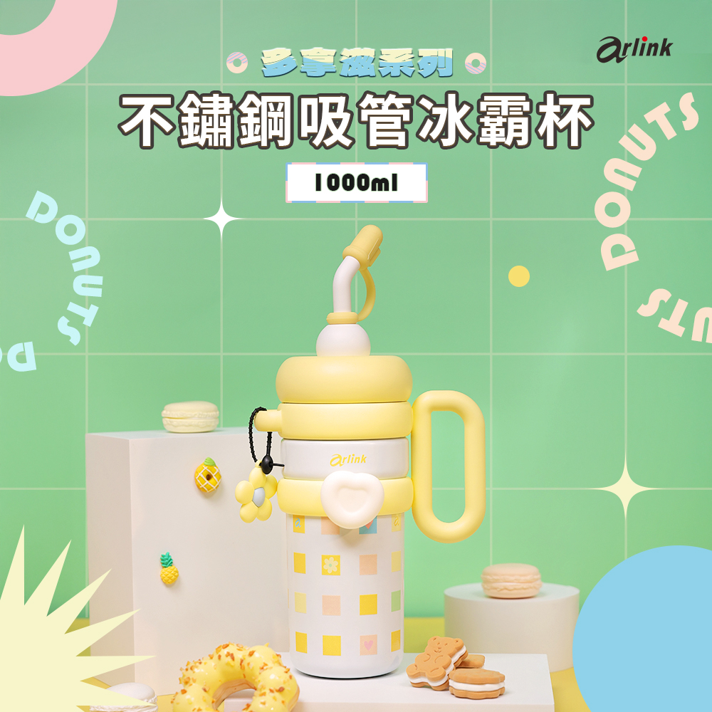 【Arlink】多拿滋系列 不鏽鋼吸管保溫冰霸杯 1000ml 水壺 保溫杯 隨行杯 手搖杯 長效保溫 寬把手 台灣品牌