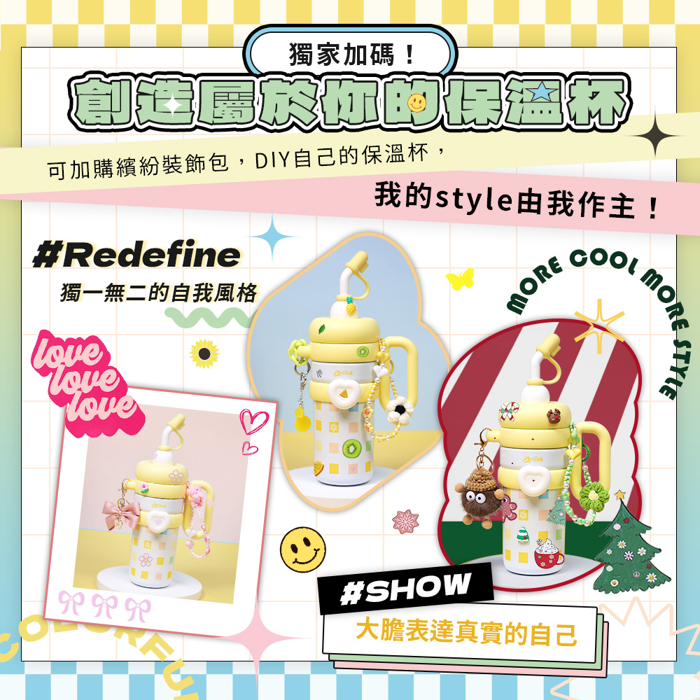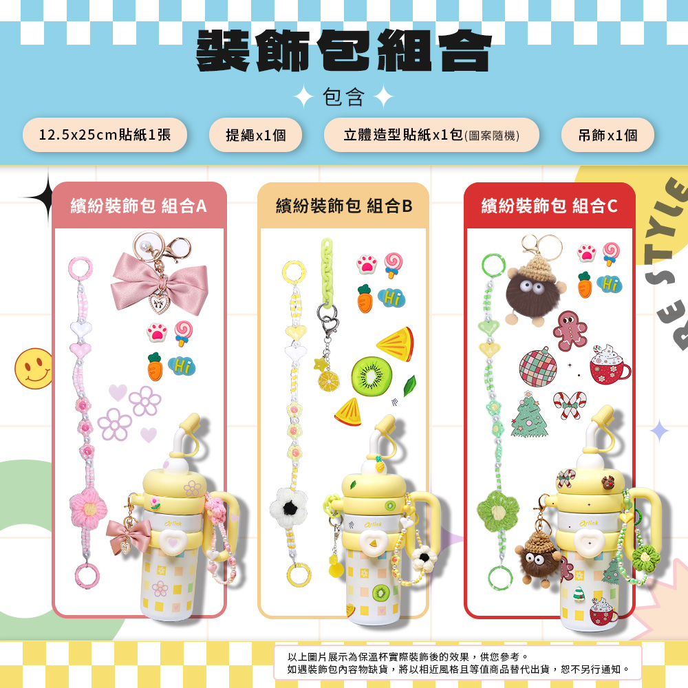 ● 可加購繽紛裝飾包,DIY保溫杯,創造屬於你的保溫杯