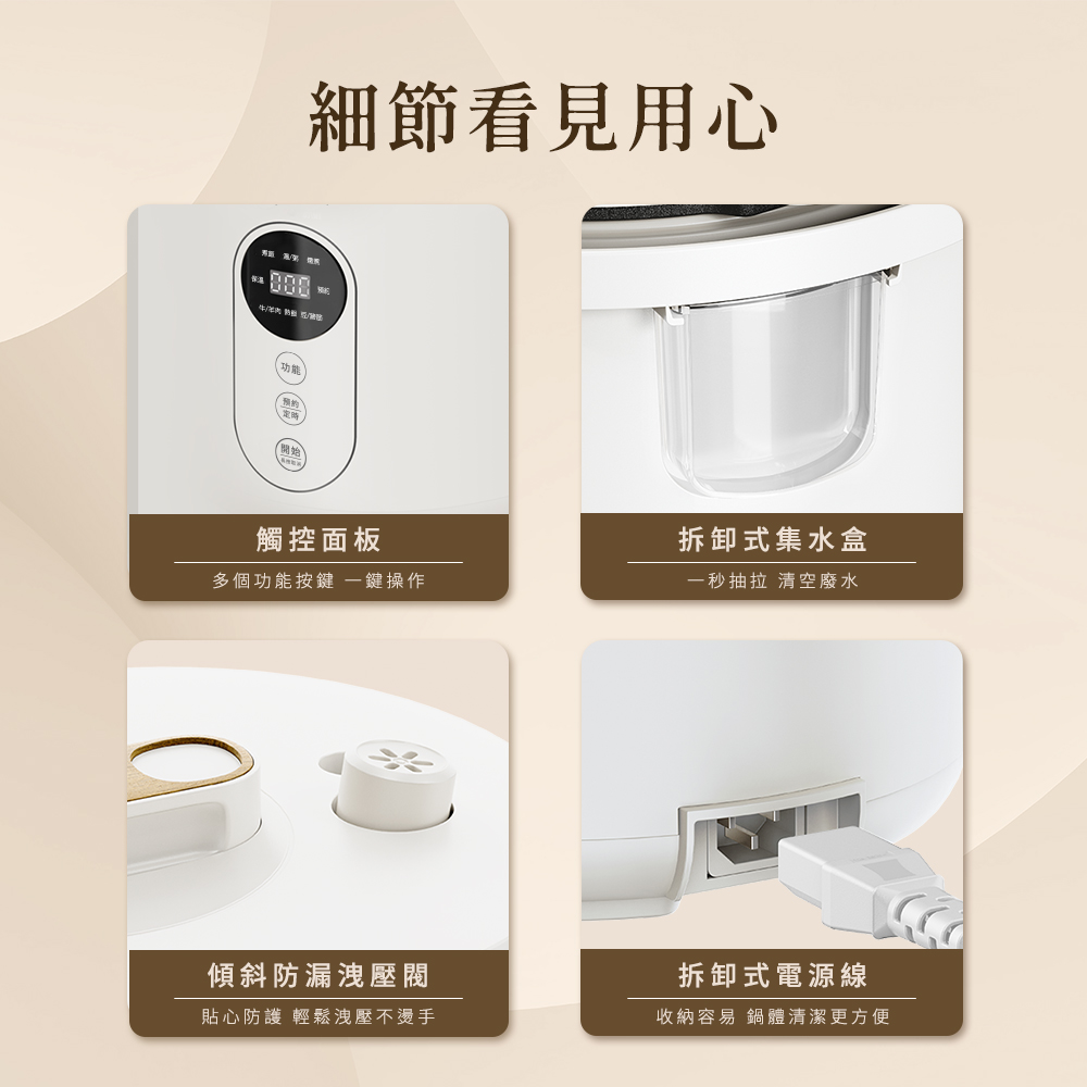 ●洩壓鈕設計於把手上,一鍵輕鬆洩壓,反向排氣不燙傷
