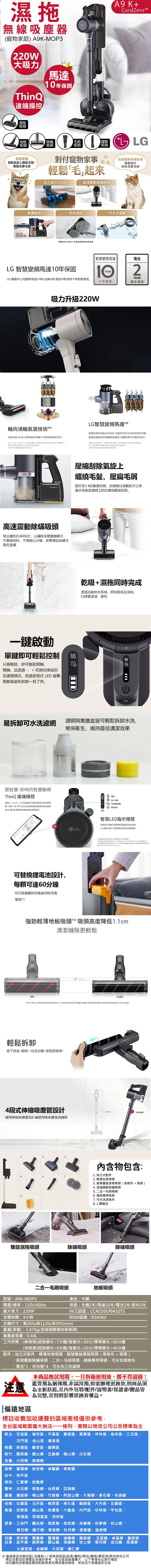 ★配件:站立式配件、輕薄地板吸頭、智慧雙旋濕拖吸頭(濕拖布 + 吸頭)