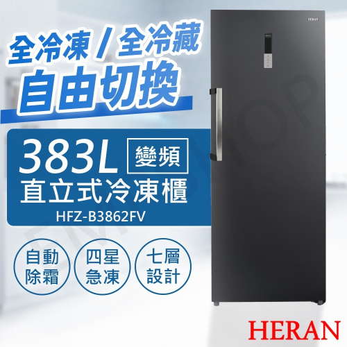 【禾聯HERAN】383L變頻直立式冷凍櫃 HFZ-B3862FV (含拆箱定位+舊機回收 偏遠地區另計)