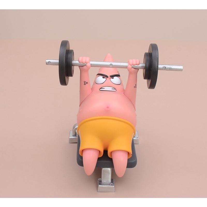 【安特羅斯】海綿寶寶 自律 派大星 健身 握推 肌肉 舉重 模型 玩具 公仔 雕像 可愛 深海大鳳梨 蟹堡王