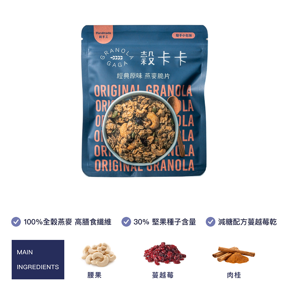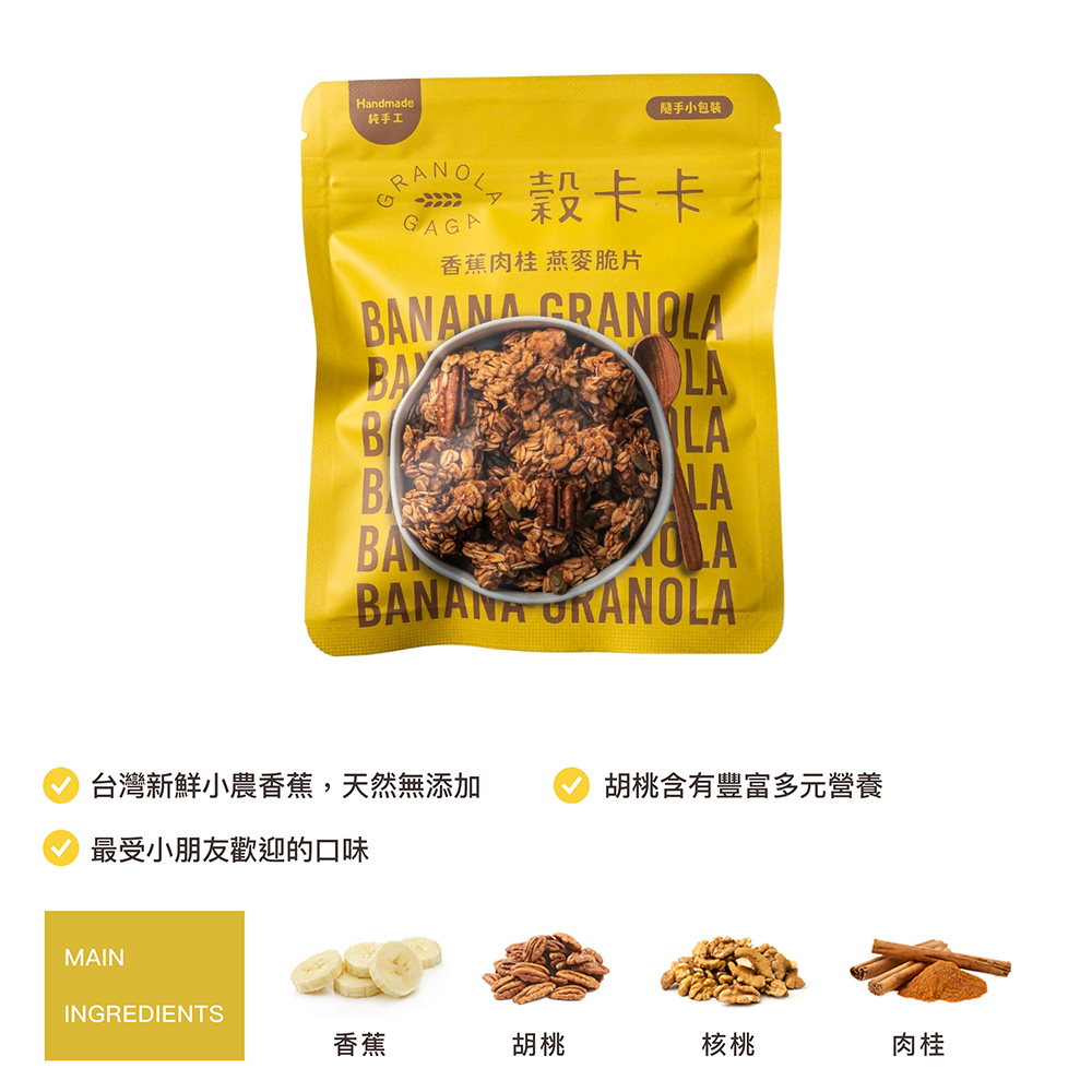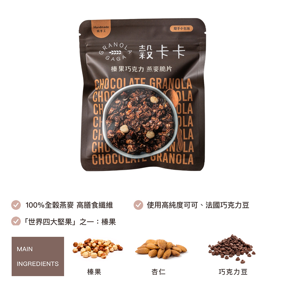 ◎品名:【榖卡卡】堅果燕麥脆片50g(經典原味/榛果巧克力/香蕉肉桂/抹茶大豆/米香三寶柑/日月潭紅茶)