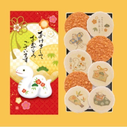 每年都會推出把做成年賀狀的蝦餅禮盒