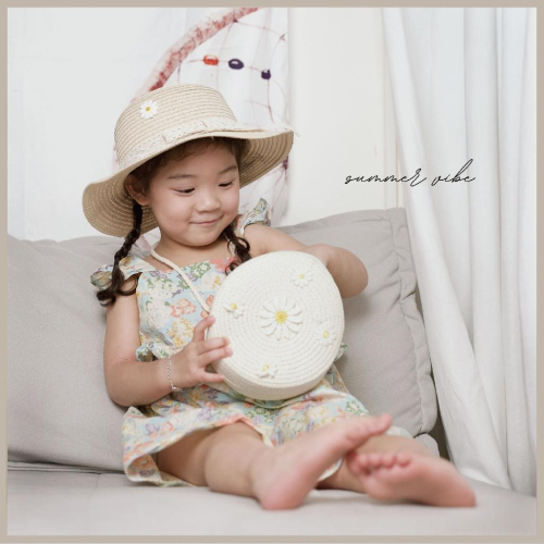 兒童草編包側背包小雛菊藤編包