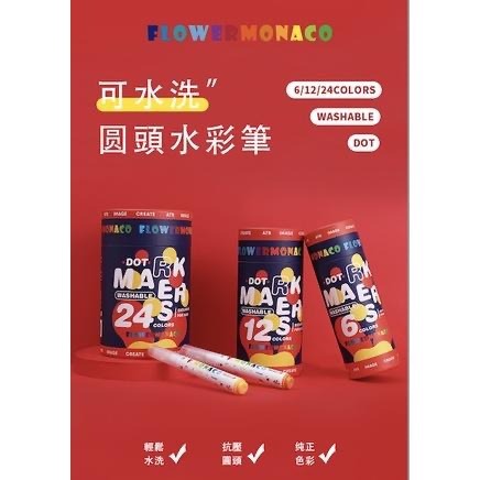 ♛ Flower monaco 可水洗圓頭彩色筆 (12色/24色)